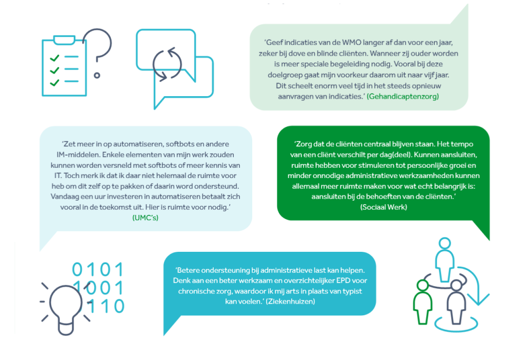 Uit de verhalen blijkt dat de verlichting van administratieve lasten het werkplezier aanzienlijk kan verhogen. Werknemers willen hun tijd namelijk aan goede zorg voor cliënten besteden.